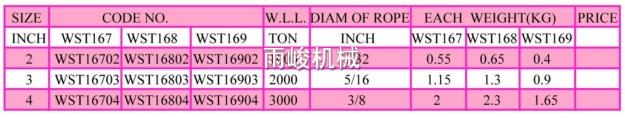 拉力:W.L.L. FROM 1000 LBS TO 3000 LBS
